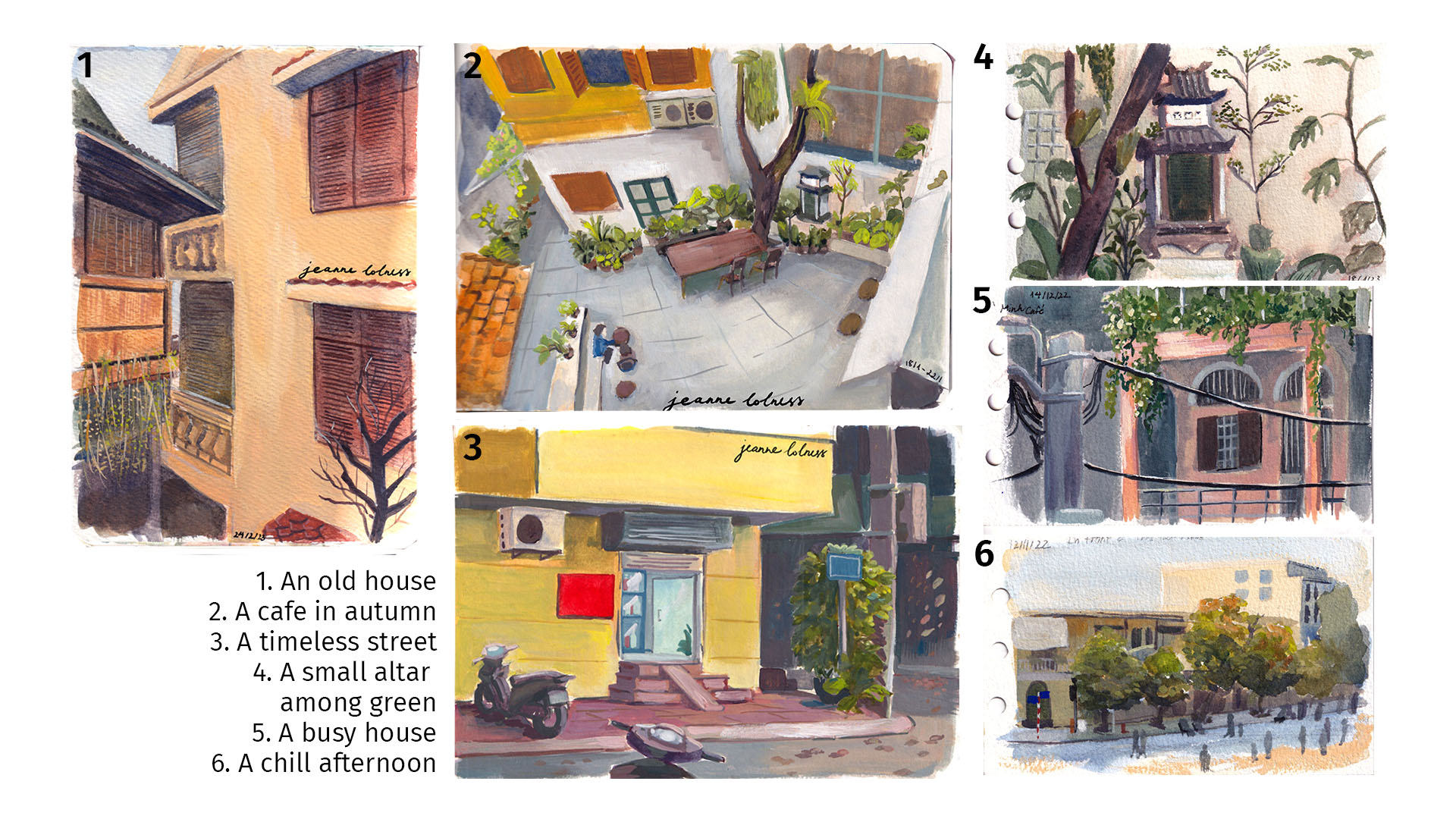 Growing up in Hanoi, I have an affection to every cornet of this city. Especially those are less known with tourists, because these places feel more authentic to me. When sitting in a cafe painting these scenes, I feel like capturing a moment of this city, a moment that will be gone with unavoidable modern development.