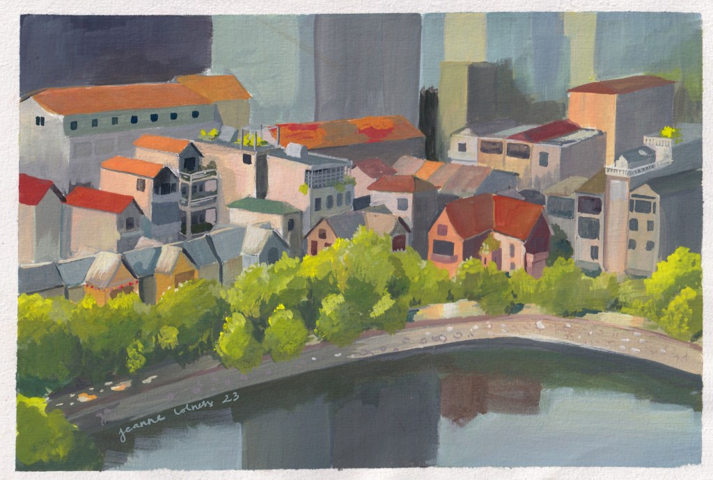 Below is my favorite painting of 2023 – this captures idyllically the area I grew up in, a very ordinary area with no tourist attractions. I’ve walked pass these houses hundreds and hundreds time.