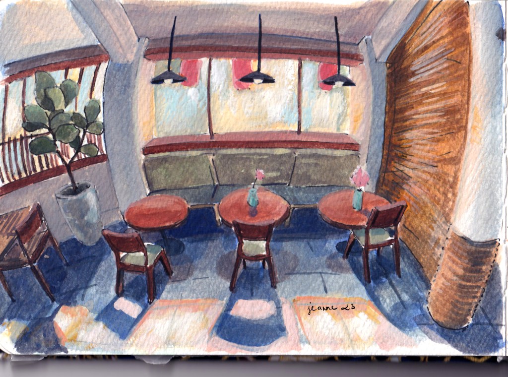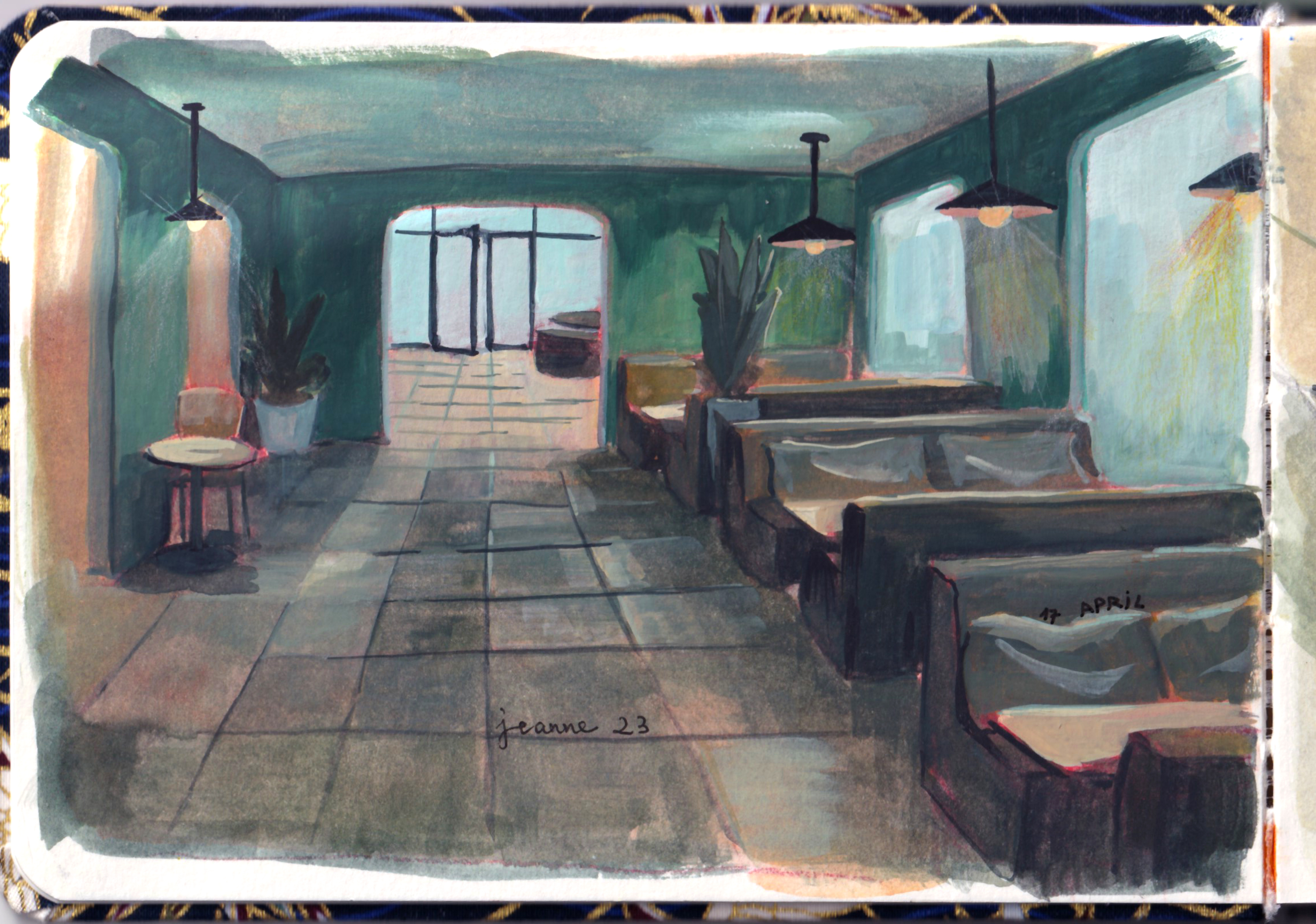 With the growth of social media and online reviewing, coffee shops start investing in interior design, good-quality chairs and tables. They become great subjects for me to paint as I observe how interior design affects how people talks and moves. Lovers meet, friends gather, strangers look at each other. All happens at a coffee shop.
