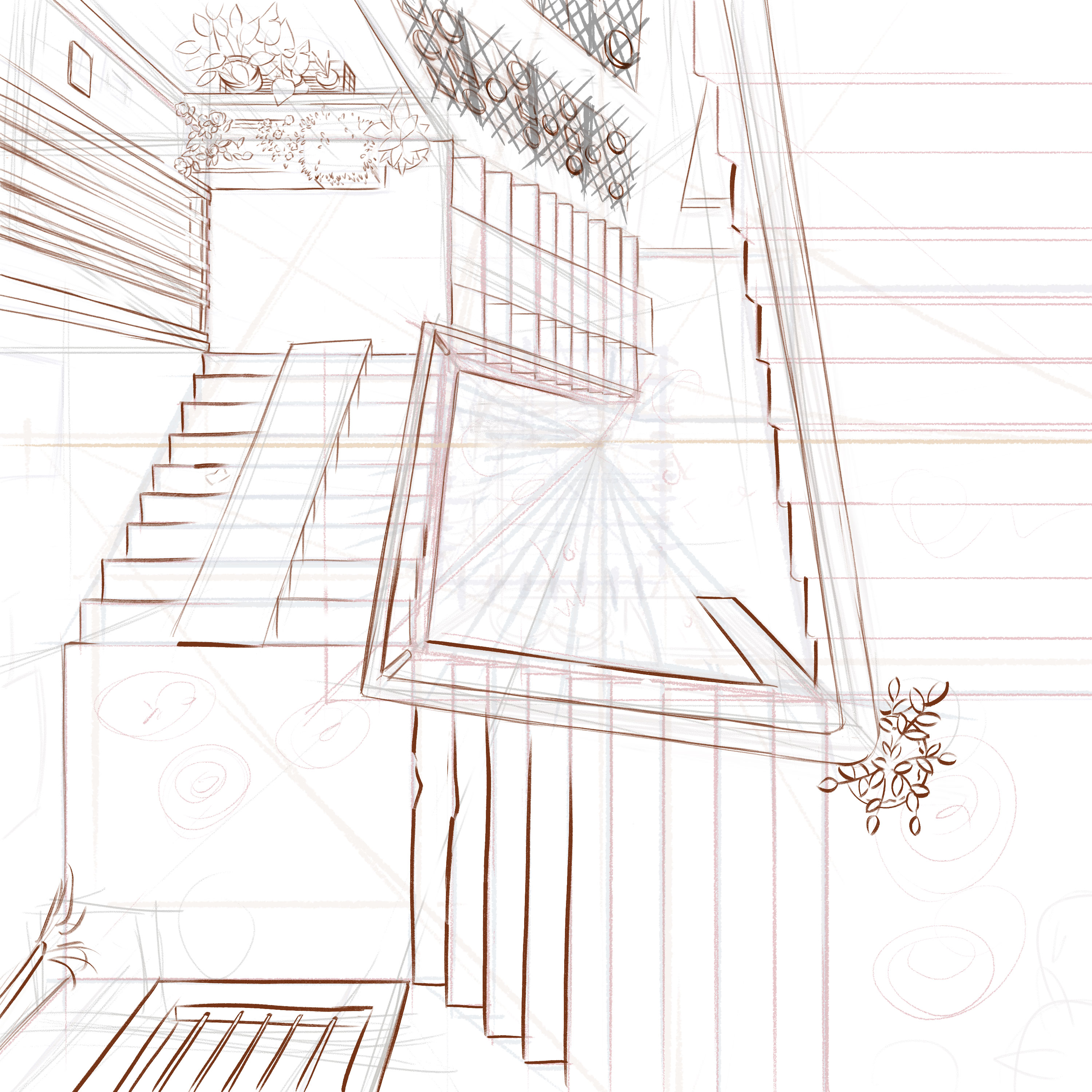 This is not a difficult illustration in terms of techniques. The perspective is tricky, but once I got the guides set up, I just need to follow the lines.