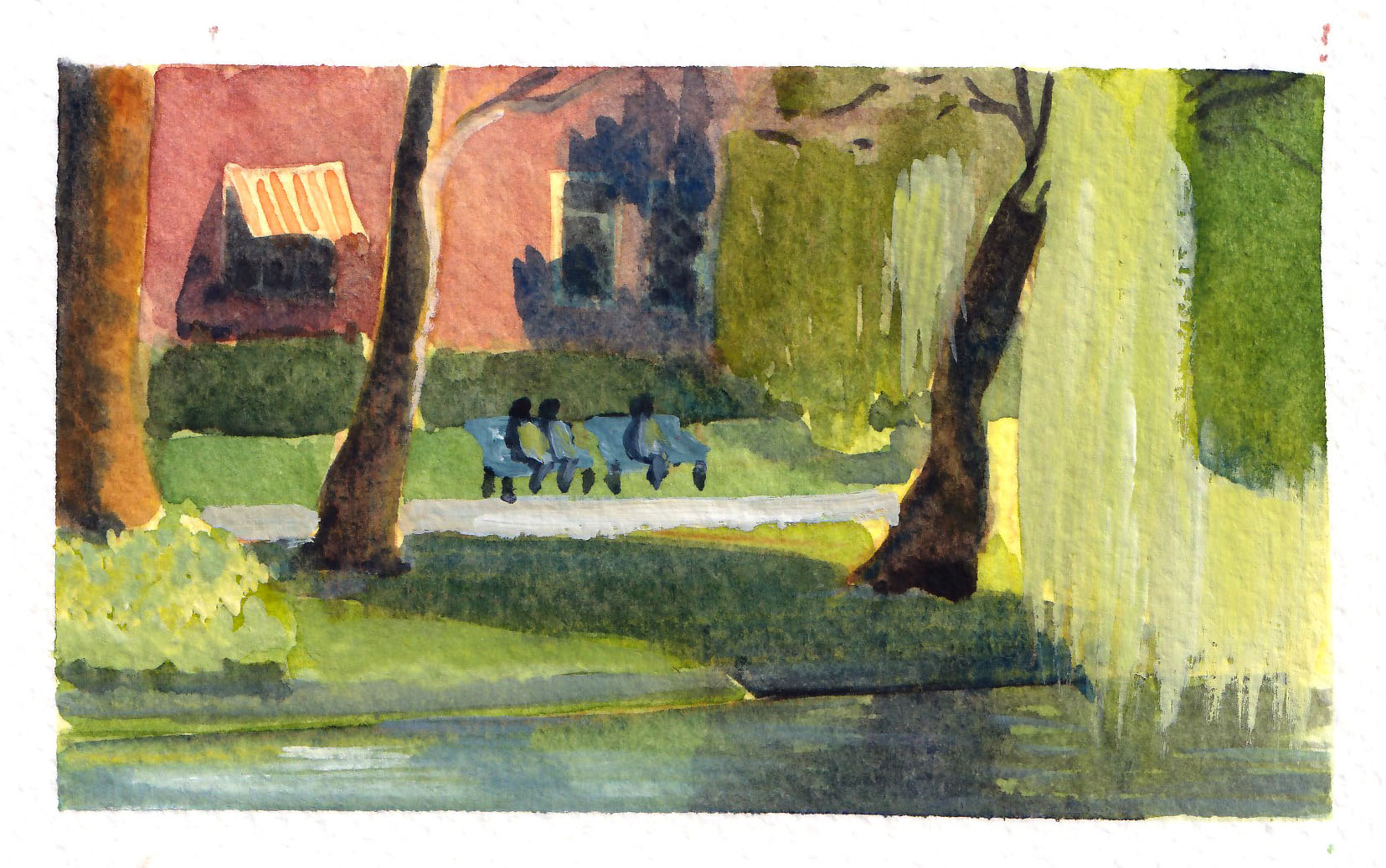 This one is to play with the green in the shadow and in highlight. The yellow house and the red roof made the process simpler with just three main basic color: yellow, blue, red.