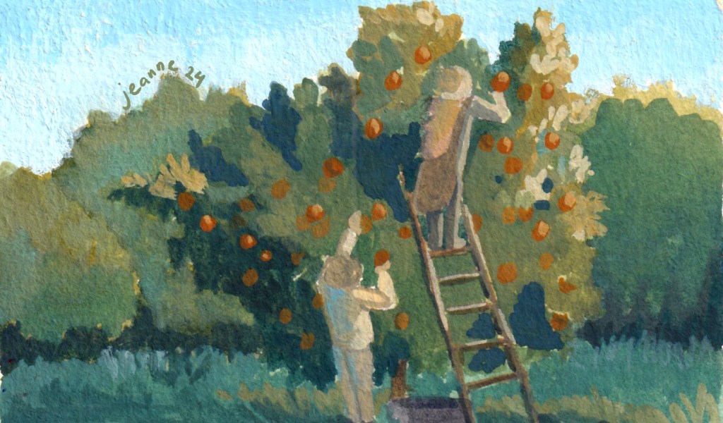 Here are a few pieces painting digitally. Apart from the highlight created by sunlight, other parts of the fruits have some blue since they are in the middle of branches and leaves.