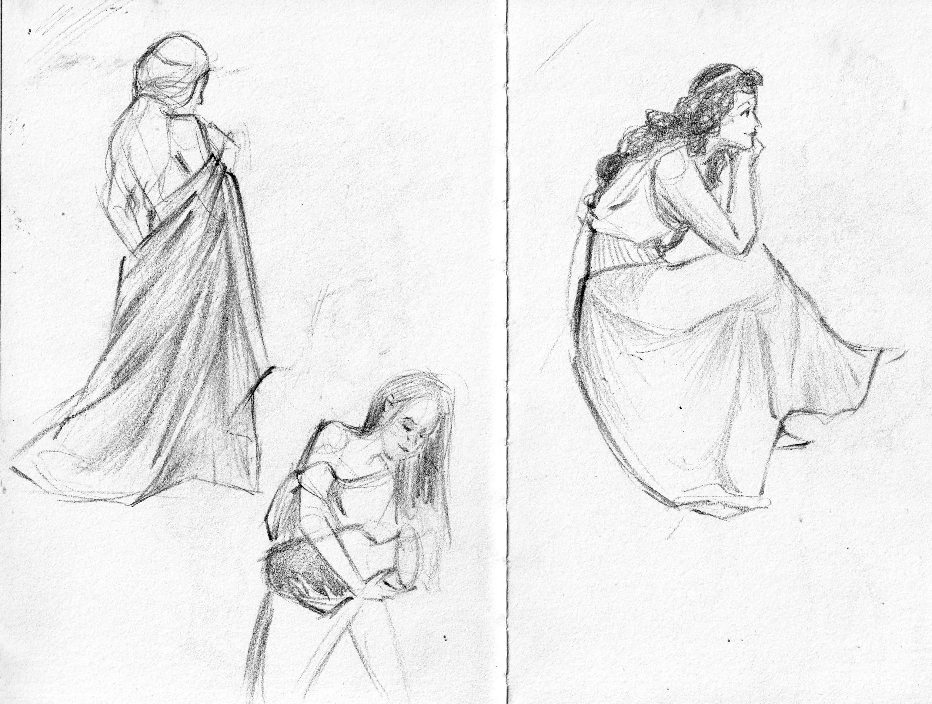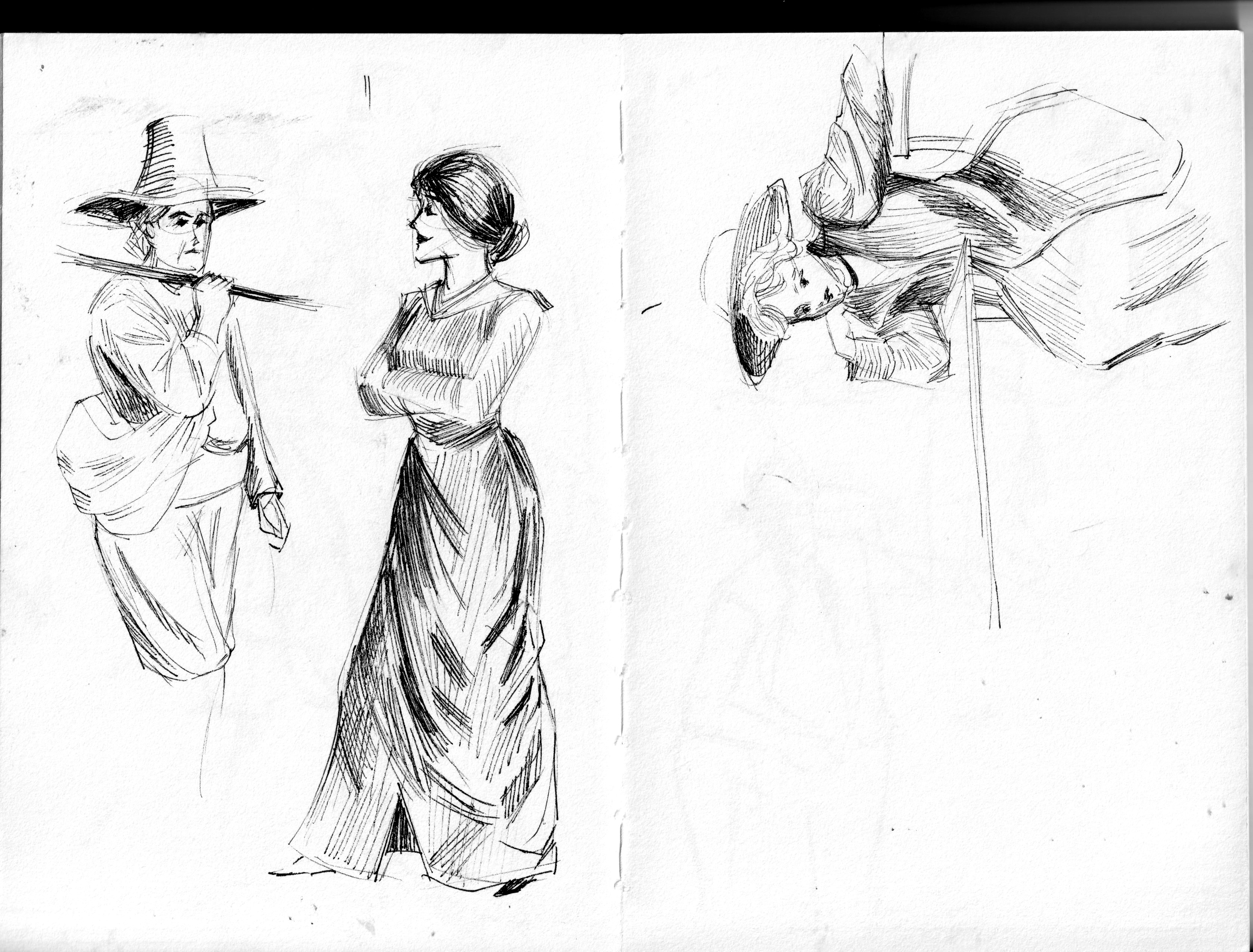 These sketches are copies of works by Charles Dana Gibson, who created the “Gibson Girl” – an iconic representation of American woman in 20th century. His sketches were lively, comical yet with a sense of reality, I find him a great source to learn sketch costumes.