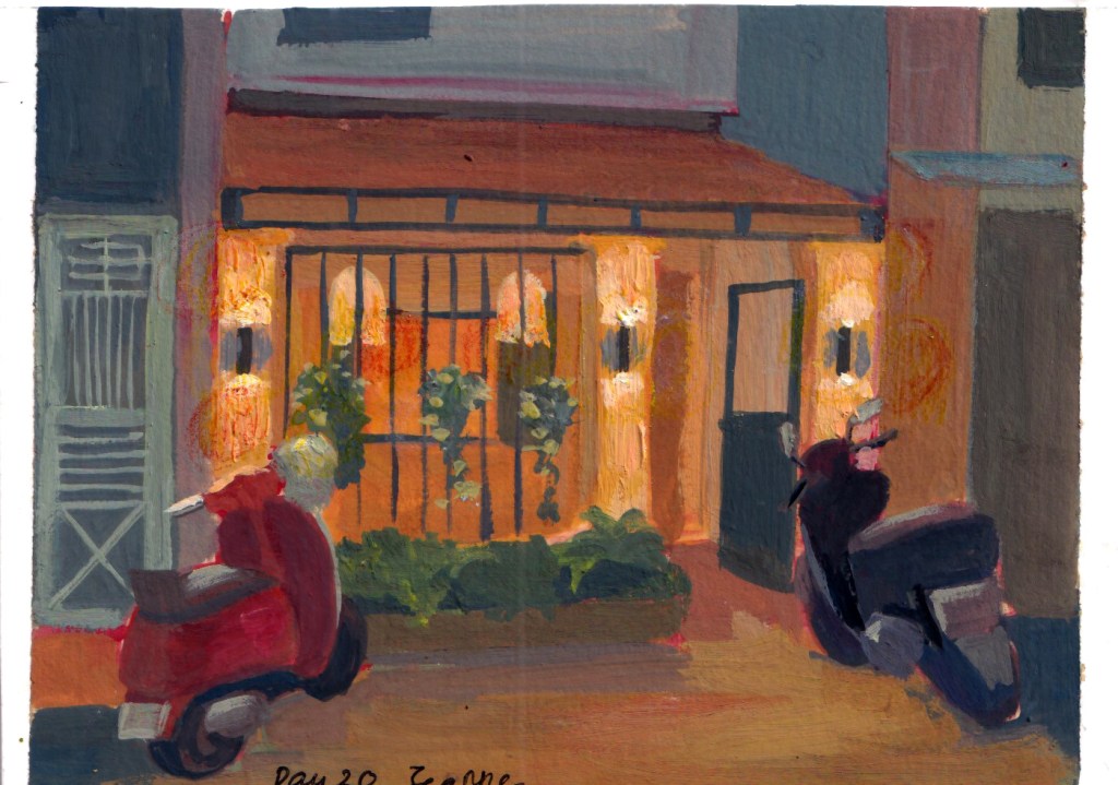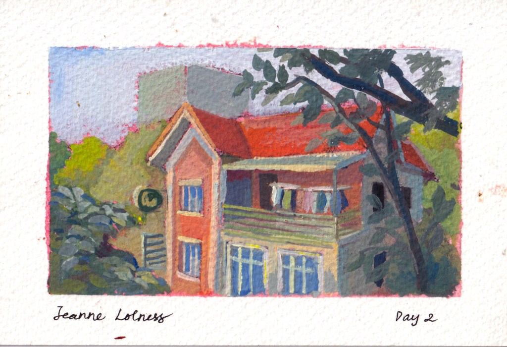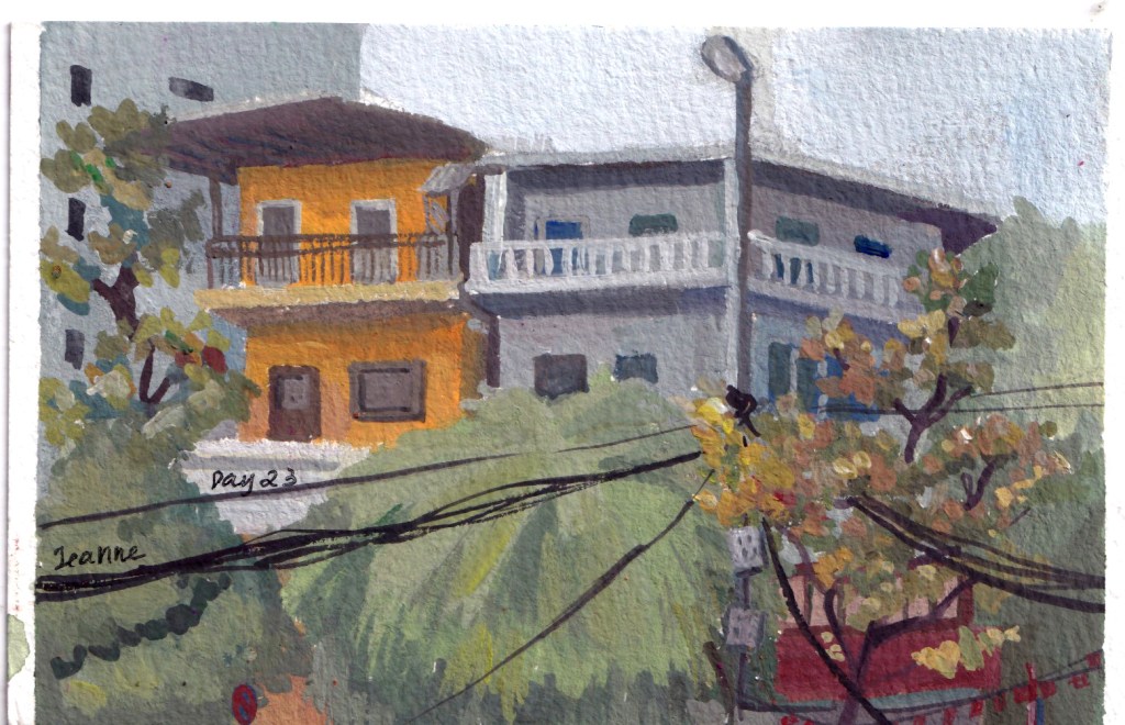 My original plan was to use this to motivate me to go out of my neighborhood, but in the end, I painted mostly houses in my area. I already have a collection of references taken by me during my weekly run. Painting from photo references taken on my own doesn’t lure me into copying the image, because I know the limits of my own photos and already have my own impression of the place.